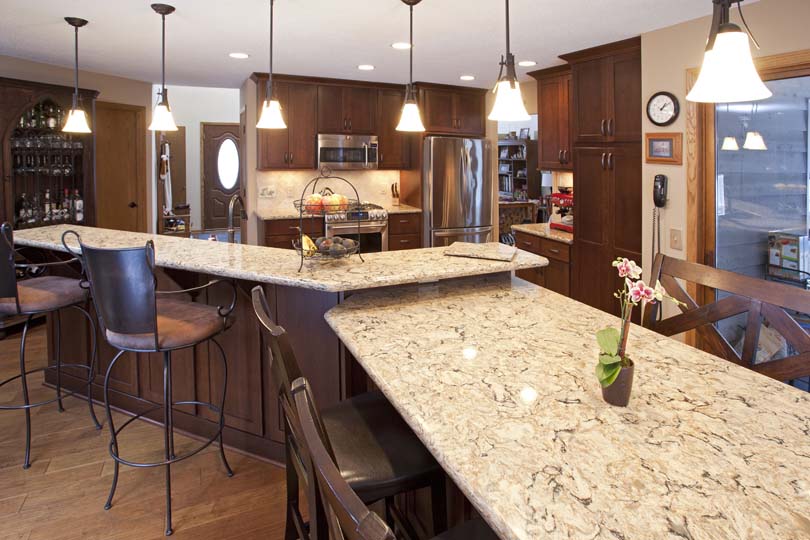 The kitchen of this beautiful Burnsville home wasn’t up to par with the rest of the home. The space was inefficient and didn’t allow for the seating or entertaining that the homeowners desired.