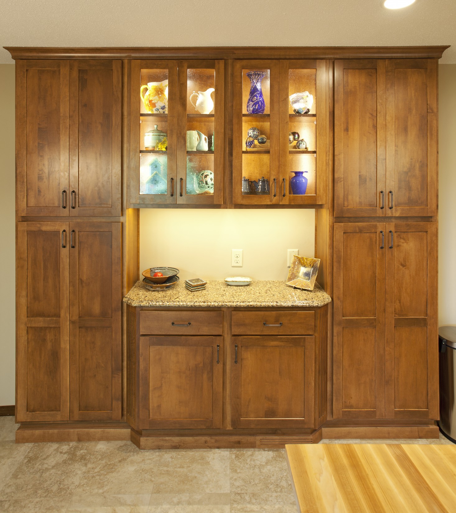 - A 12” buffet built into the side wall cabinetry for decor and use as a serving area