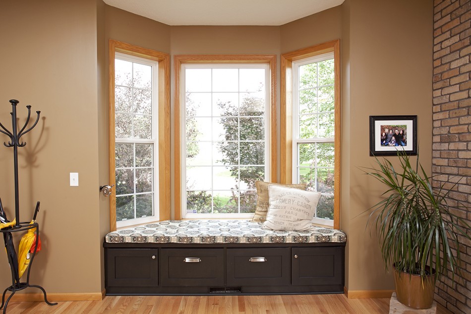 WINDOW BENCH — Shh… this is really a secret file cabinet!  Needing a place to keep their files, an under-window bench was implemented that doubles as file storage.  A creative and attractive use of cabinetry to solve a practical need — something we at The Cabinet Store + Culina Design excel at!