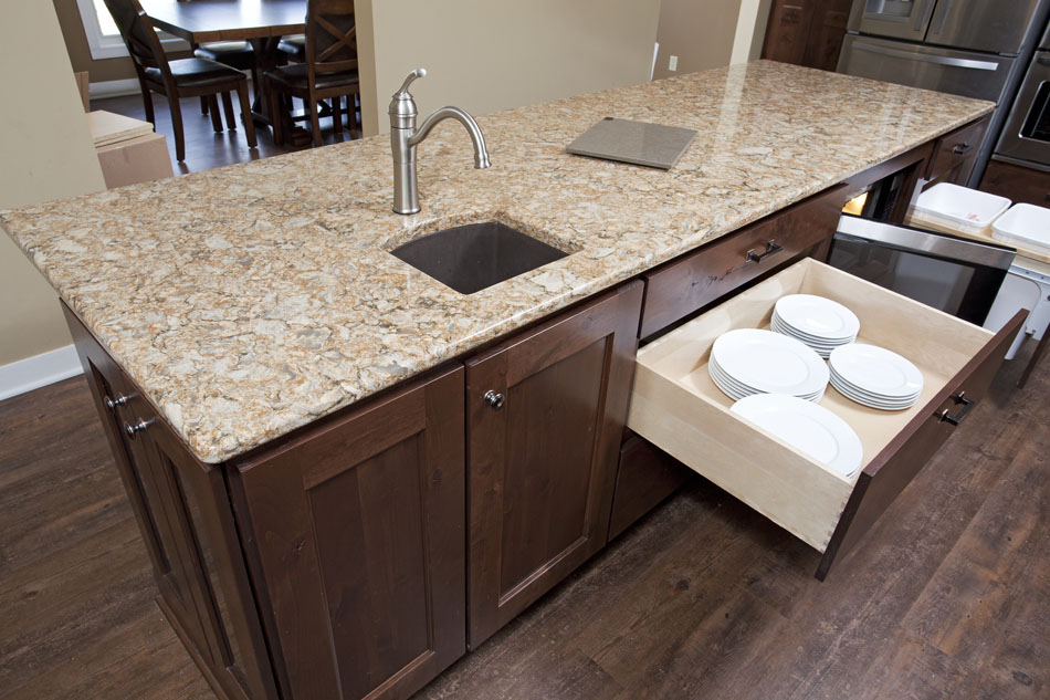 - Countryside cabinets in Rustic Alder, with an Auburn stain
